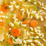 The key is to cook noodles separately and slightly undercook them. Store them apart from the soup and add them right before serving or reheating. This keeps the noodles from soaking up too much broth and turning mushy.