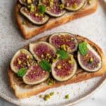 Spread about half a tablespoon of cinnamon butter generously on each toast slice while warm. Layer on the sliced fresh figs, sprinkle roasted pistachios, flaky sea salt, and finish with finely chopped mint. That’s it – simple, beautiful, and insanely tasty. Grab a fork or go rustic and eat it right with your hands.