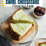 A creamy and vibrant Vegan Matcha Swirl Cheesecake made with cashews, coconut yogurt, and a date-walnut crust, perfect for a dairy-free and delicious dessert that showcases the delicate flavor of matcha green tea.