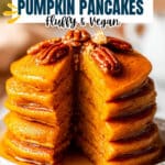 Delicious and fluffy vegan pumpkin pancakes made with pumpkin puree, warm spices, and a blend of plant-based ingredients, perfect for a cozy breakfast or brunch.