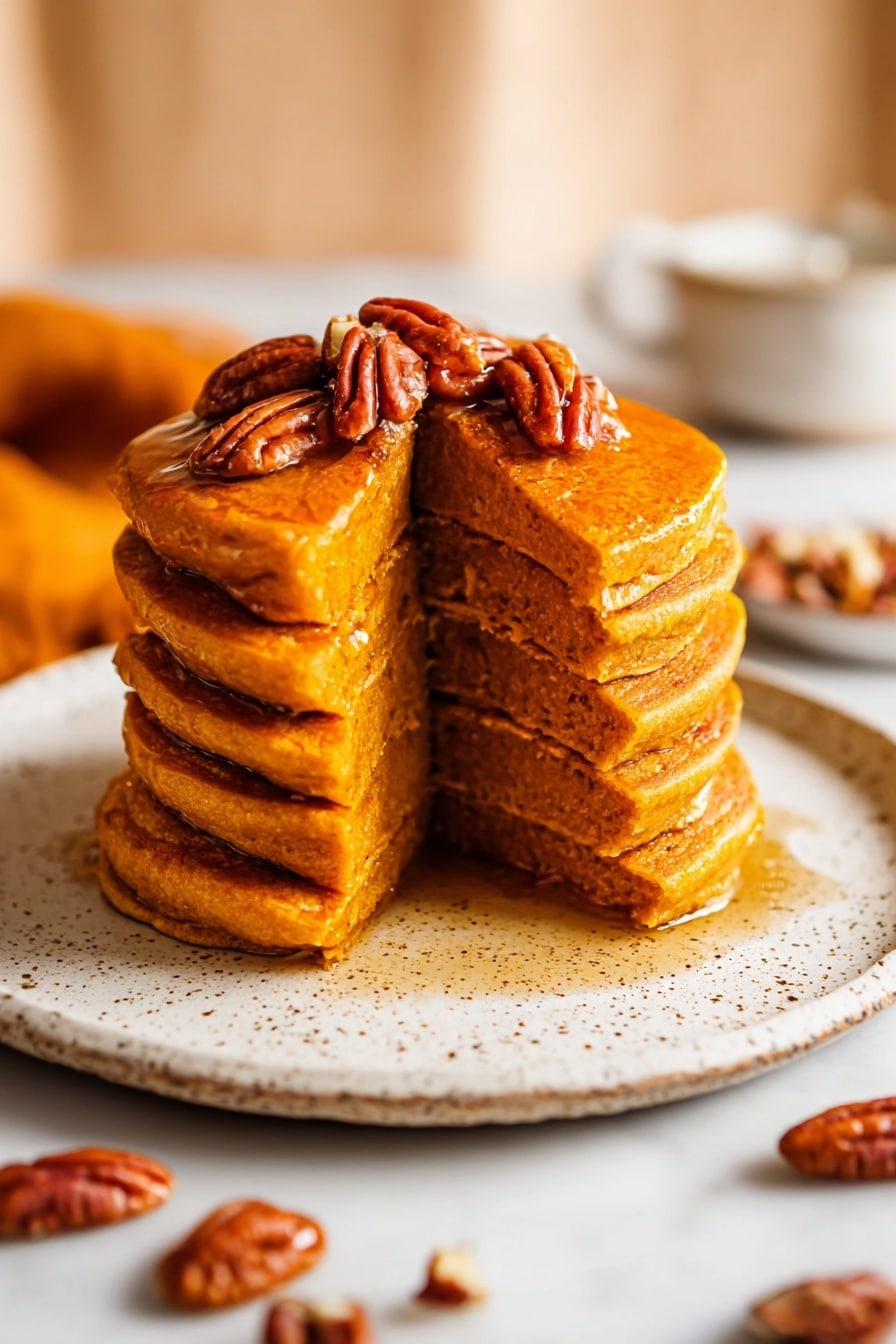 I’m all about layers of flavor, so I often top these pancakes with a drizzle of extra maple syrup, a dollop of vegan whipped cream, and a handful of toasted chopped pecans. Vegan butter melted on top is a simple treat I never skip. If you want to go fancy, a swirl of vegan caramel sauce or a sprinkle of cinnamon sugar is heavenly.