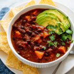 I’m a big fan of topping my chili with freshly chopped cilantro and creamy slices of avocado—that contrast of cool and warm is incredible. Sometimes I add a dollop of sour cream or crème fraîche for richness, and a handful of crunchy tortilla chips adds texture and fun. If you like cheese, a sprinkle of sharp cheddar melts beautifully on top.