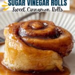 Don’t overbake and keep an eye near the 30-minute mark. Also, pouring the warm vinegar sauce over the rolls before baking helps lock in moisture to keep them delightfully gooey.