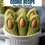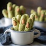 Witches’ Fingers Cookies are delicate, crispy meringue cookies tinted with matcha powder and topped with whole almonds to resemble spooky fingers. Perfect for Halloween or themed parties, these cookies are light, airy, and visually striking with a subtle green tea flavor.